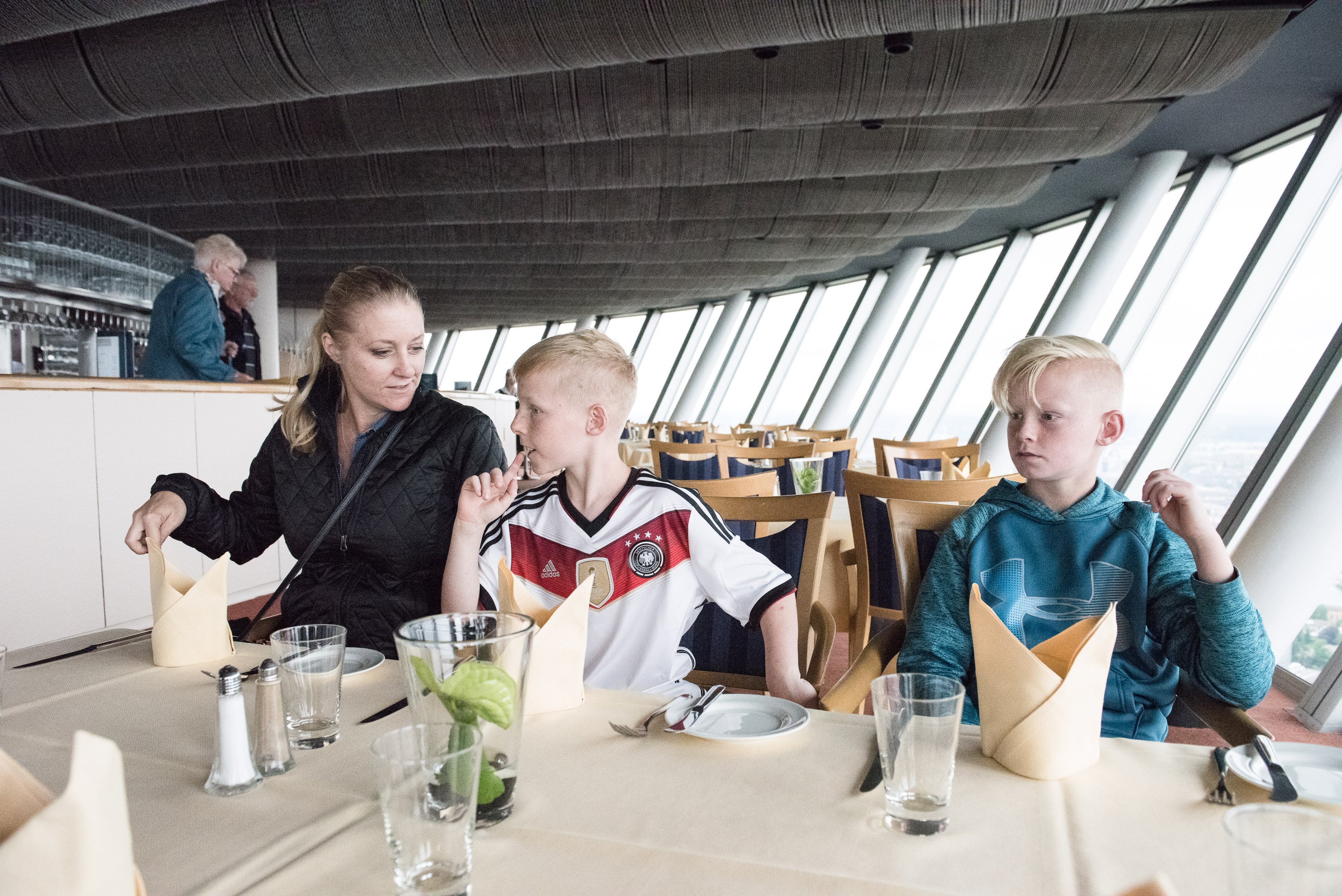 Today we met Karl at the Rhine Tower (Düsseldorf’s TV Tower). It is the largest digital clock in the world. The 360 view of Düsseldorf was spectacular. We actually sat in a rotating restaurant upstairs and had lunch…made a full 360 exactly.